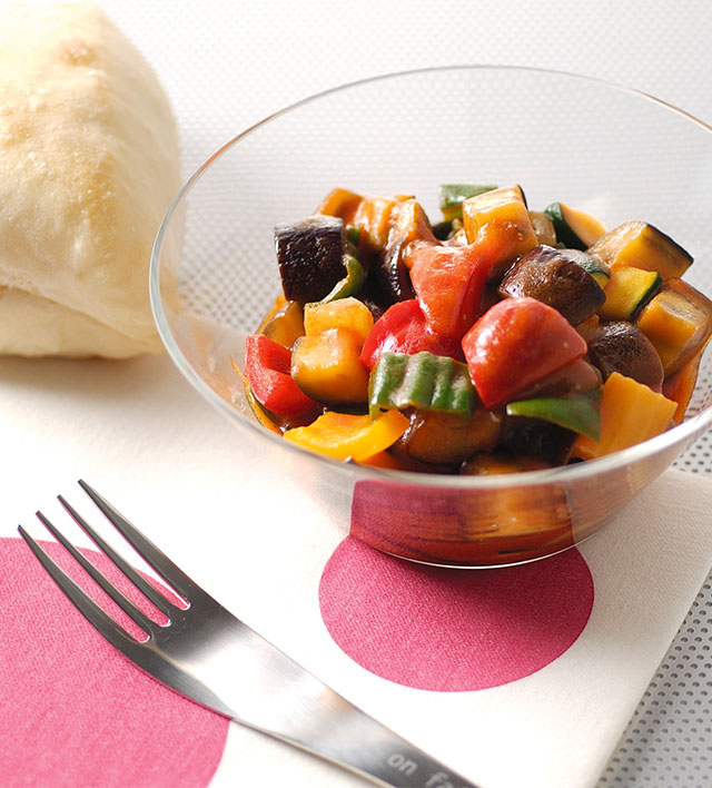 ラタトゥーユ(Ratatouille)とは、南フランス・プロヴァンス地方の野菜の煮込み料理の事。温かいままでも、冷やしてもいただけます。また、そのままでももちろん、パスタとあえたりしてもよいでしょう。