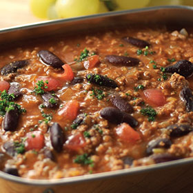 トマトスープとカレーパウダーでつくるヘルシーメニュー。スパイシーな香りのエスニックなテイスト。