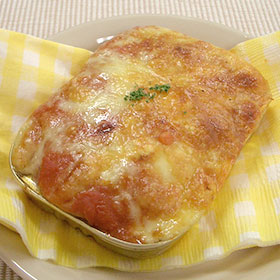 | 2 | 鍋にオリーブオイルを入れ、みじん切りにしたにんにく、玉ねぎ、セロリの順に色をつけないようにソテーし、合い挽き肉を加え塩・コショウでソテーします。 |