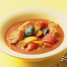 | 3 | トマトスープとキドニービーンズを加え温め、最後に1のトマトを加えパセリをふって出来上がりです。 |