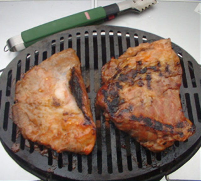 | 3 | 強火の方で肉の表面を焦がし、ほどよい焦げ目が付いたら弱火の方でじっくり焼き上げます。(蓋のあるBBQグリルの場合は開け閉めで火加減を調整しじっくり焼き上げてください。) |