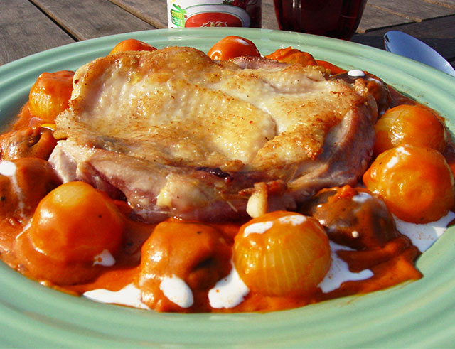 | 2 | 塩・コショウで味を調えトマトスープ、サワークリーム、牛乳を加え弱火で煮込みます。 |