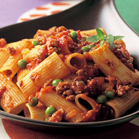 | 3 | 1のパスタに2をかけ、湯むきして角切りにしたトマトとバジルの葉を飾ります。 |